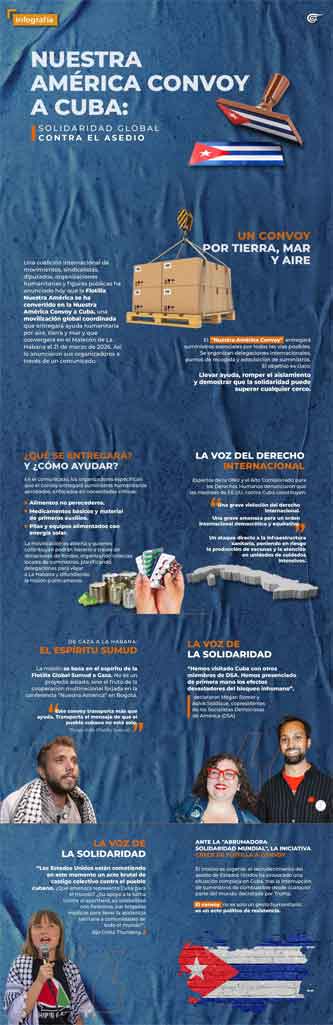 Adler comentó que la iniciativa global contempla la salida de activistas hacia la isla desde más de 30 países, en un esfuerzo que “realmente representa la conciencia popular del mundo ante un asedio que no solo agrava, sino inflama, inicia y determina la crisis humanitaria en Cuba”.